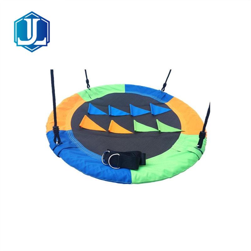 Add excitement to your backyard with this vibrant Round Mat Tree Swing designed for kids! Featuring a colorful outer edge in green, orange, yellow, and blue, and a durable black mesh seat, this swing combines safety, comfort, and style in one playful package.